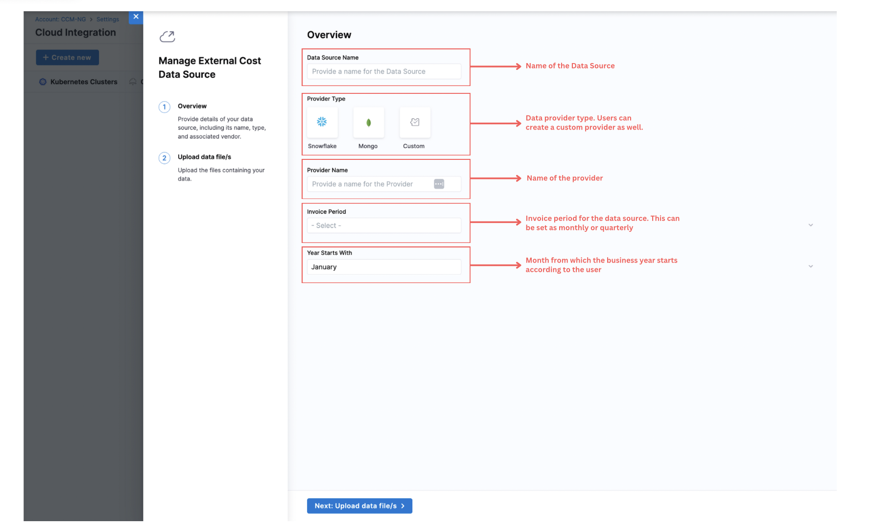 External Cost Data Ingestion allows users to bring cost data from third-party vendors such as Mongo, Snowflake, etc., into Harness Cloud Cost Management (CCM). This allows users to see unified visibility and analysis across their cloud and external spend. Instead of managing these costs in spreadsheets or siloed tools, users can now consolidate them in Harness CCM for a single source of truth across all the cloud and non-cloud spend.
