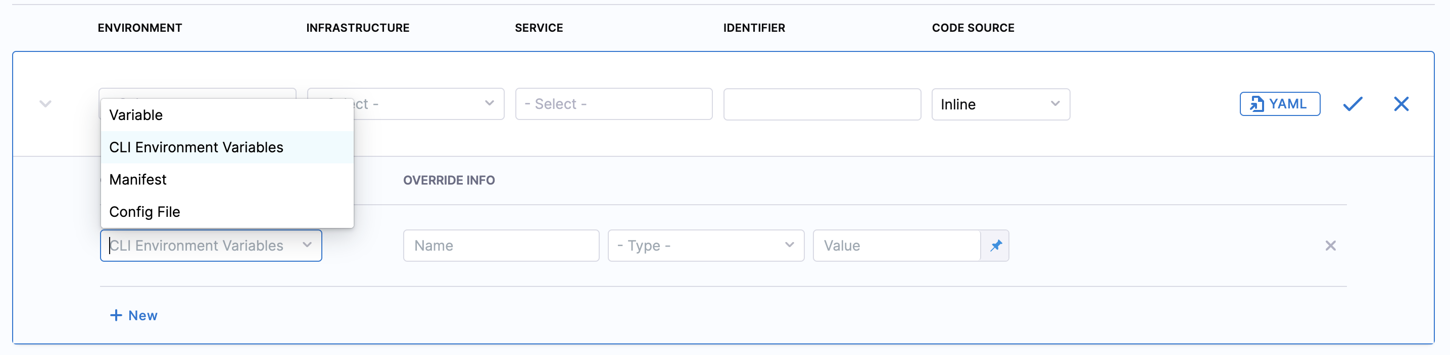 In Service, select a service you want to override when it is deployed to the selected environment.