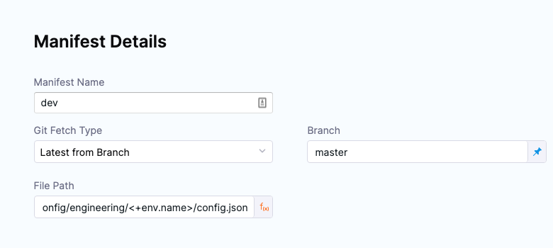 4. File Path: enter examples/git-generator-files-discovery/cluster-config/engineering/<+env.name>/config.json.