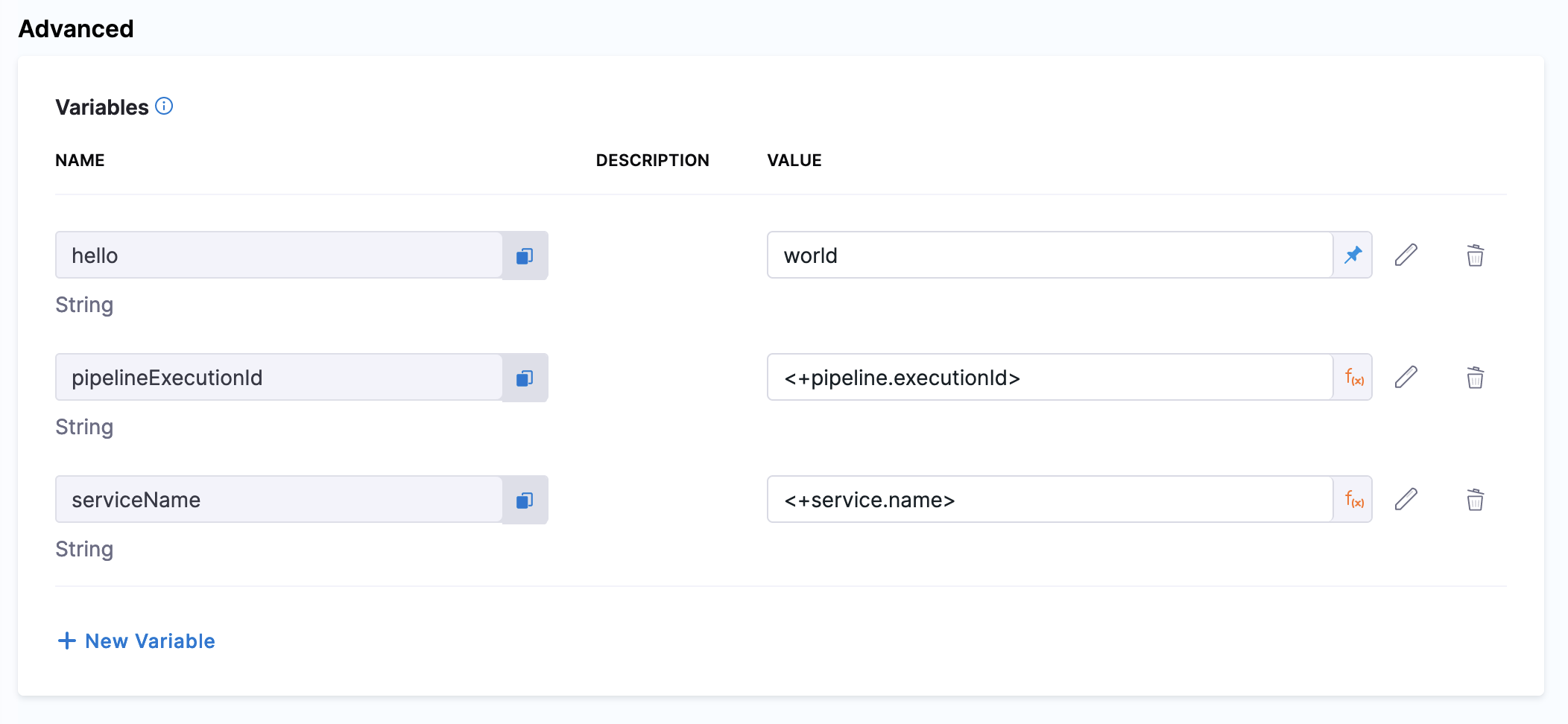 3. Under Advanced, select New Variable.