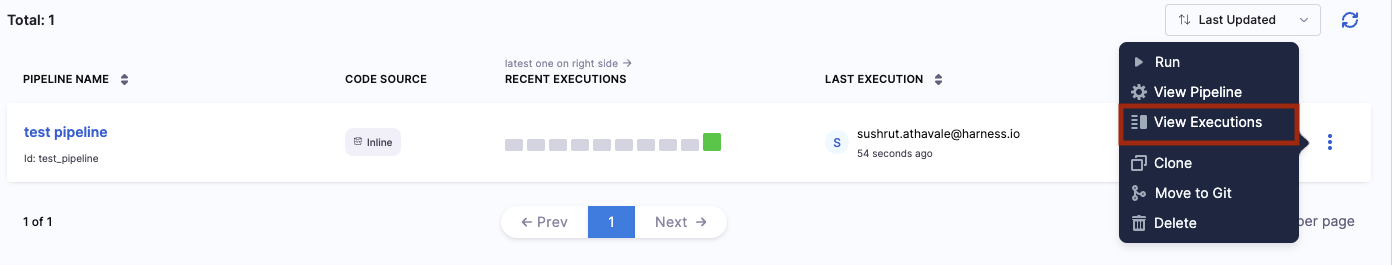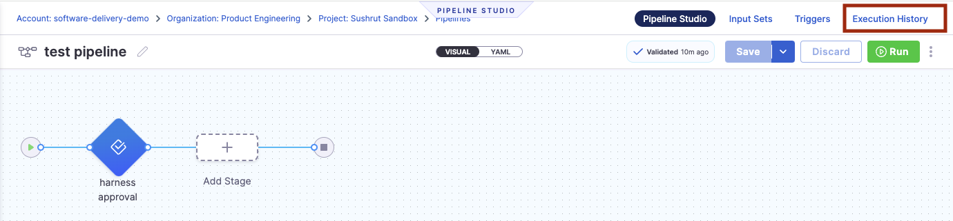 In the Harness UI left navigation, select Pipelines, and then select the pipeline for which you want to view the execution details.