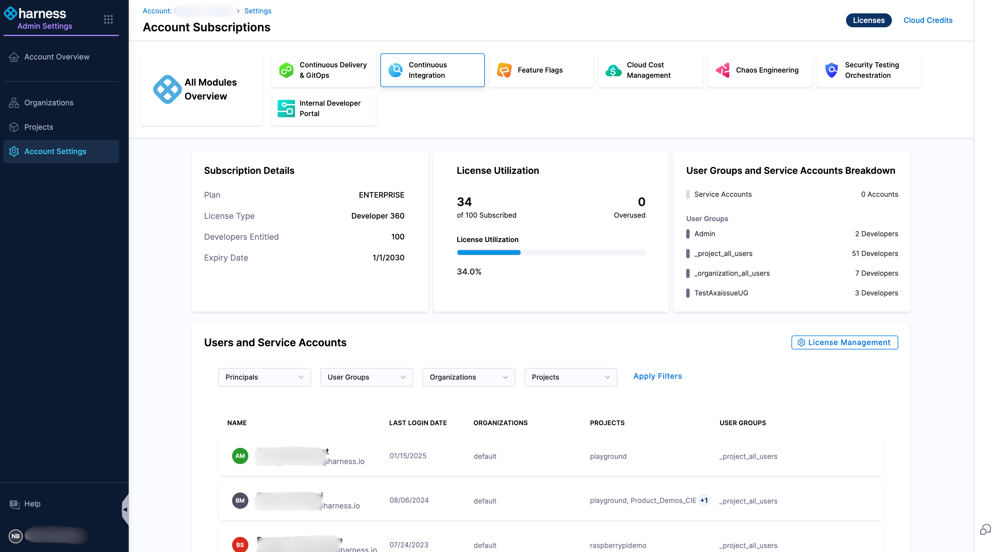 You can quickly and securely manage your Harness CI subscription directly through your Harness account at any time, including: