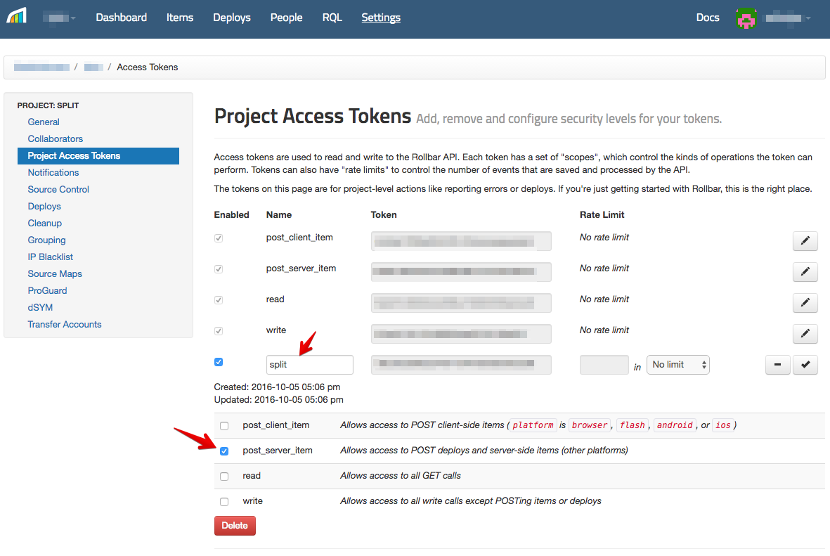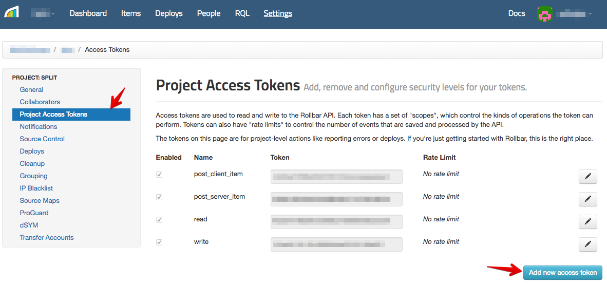 Paste the token you copied in step 3 of the Rollbar instructions.