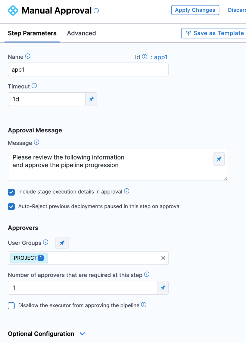 Now, the Approval step will automatically approve exactly one week from the current time of pipeline execution.