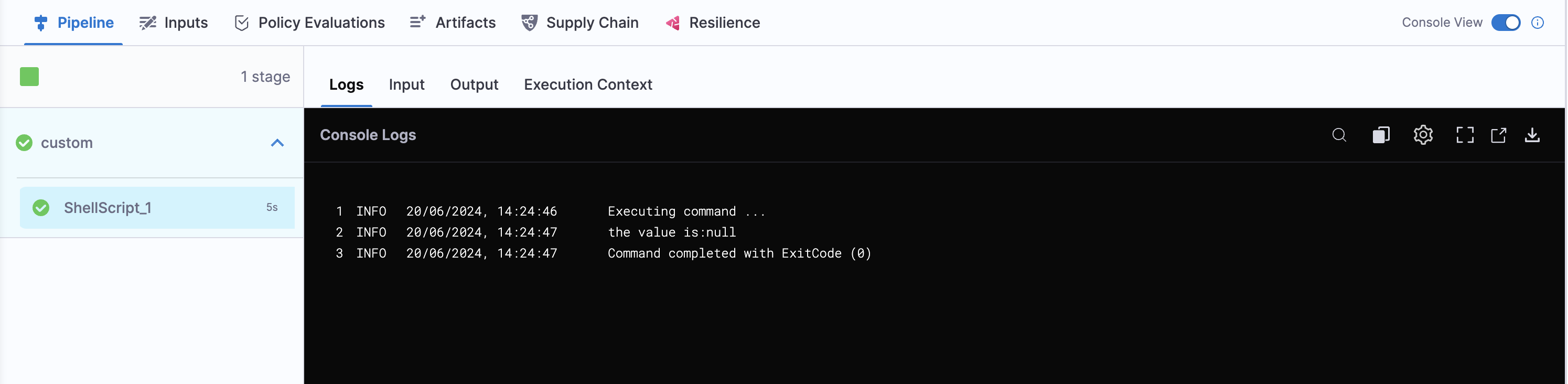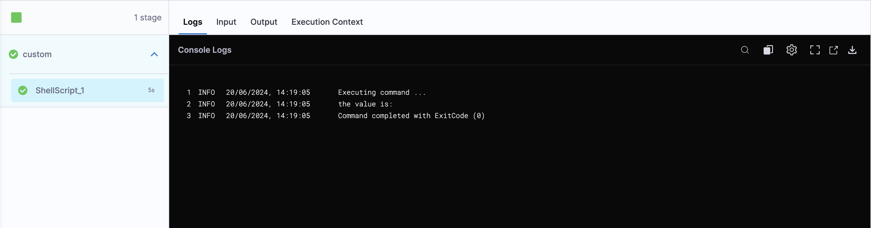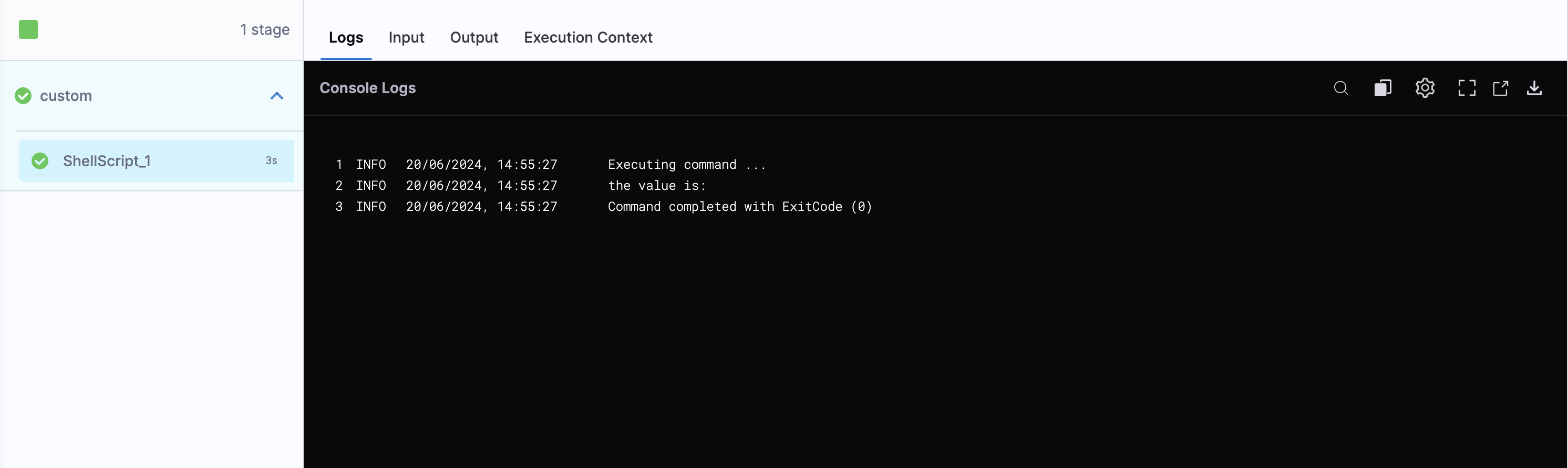 If we run a pipeline using an input set and check the execution we will see the output as:-