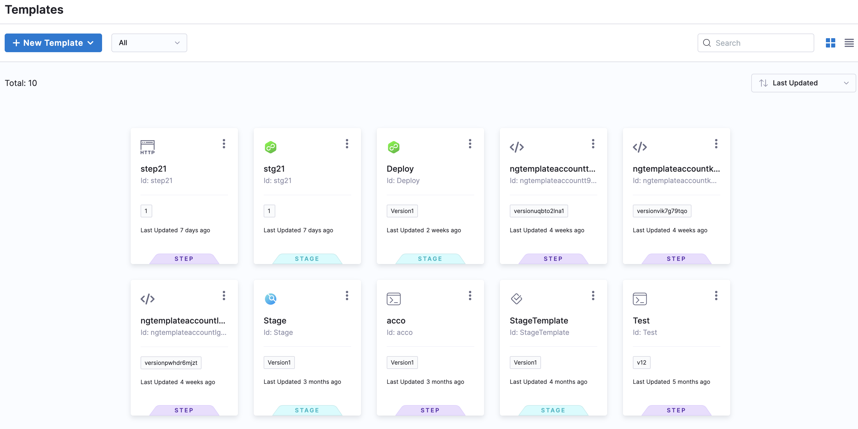 You can add the following types of templates to your Harness account/org/project: