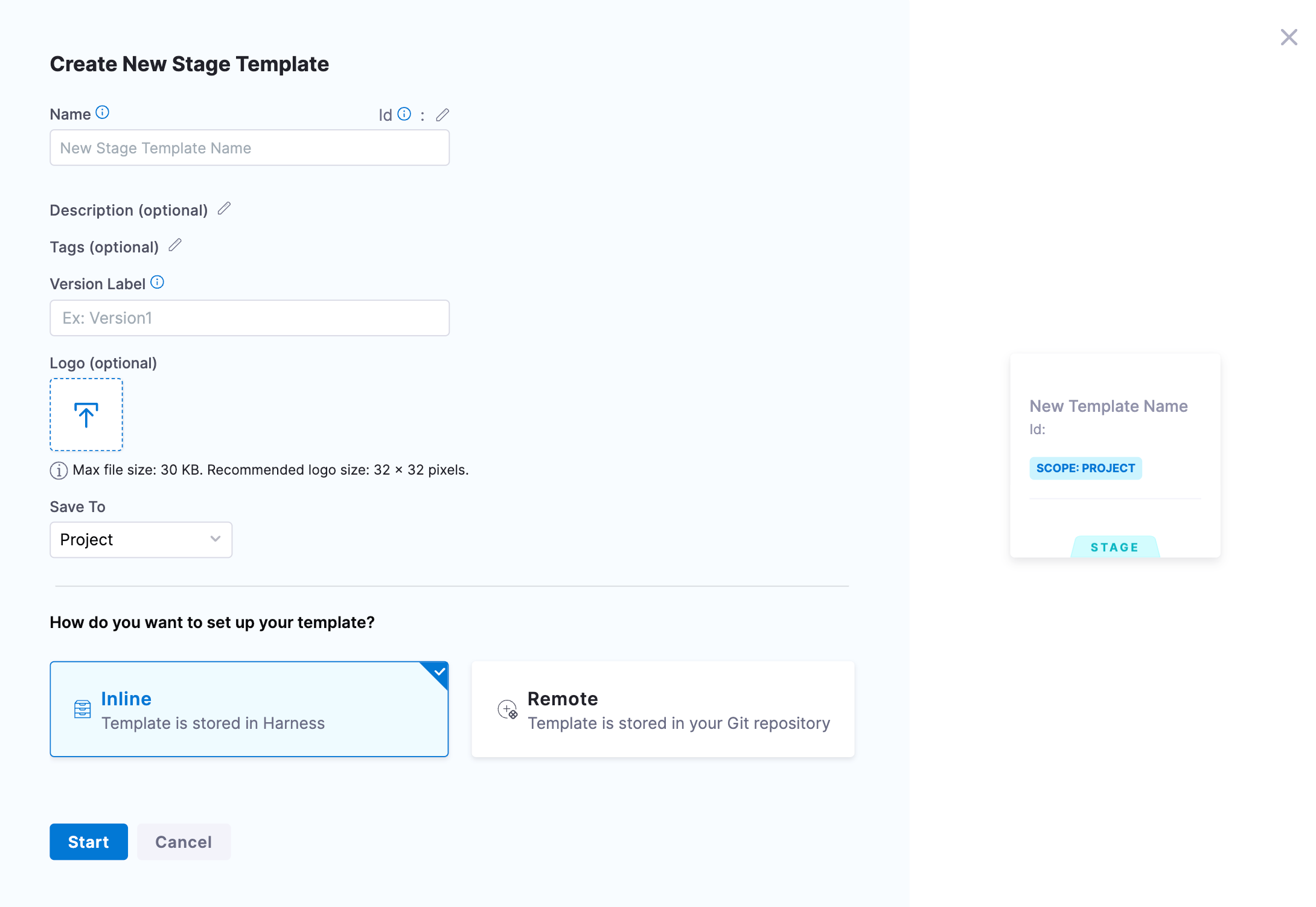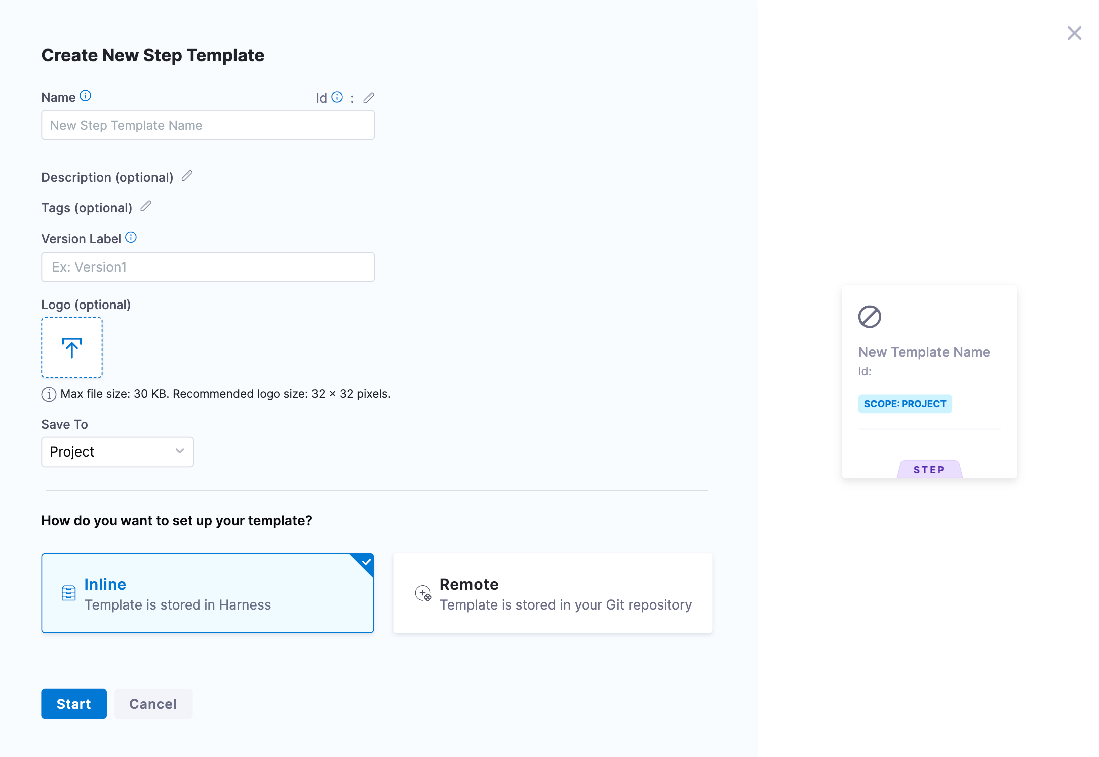 If needed, you can also update the scope of the connector, moving it from project to org or account level, to access and save the template to a different repository.