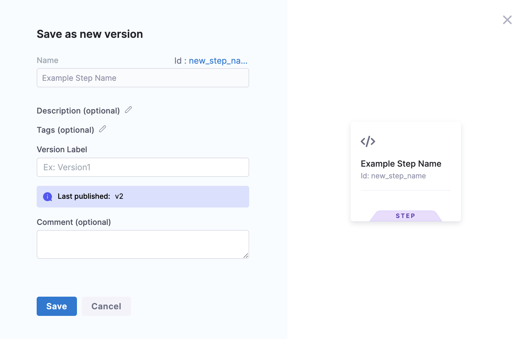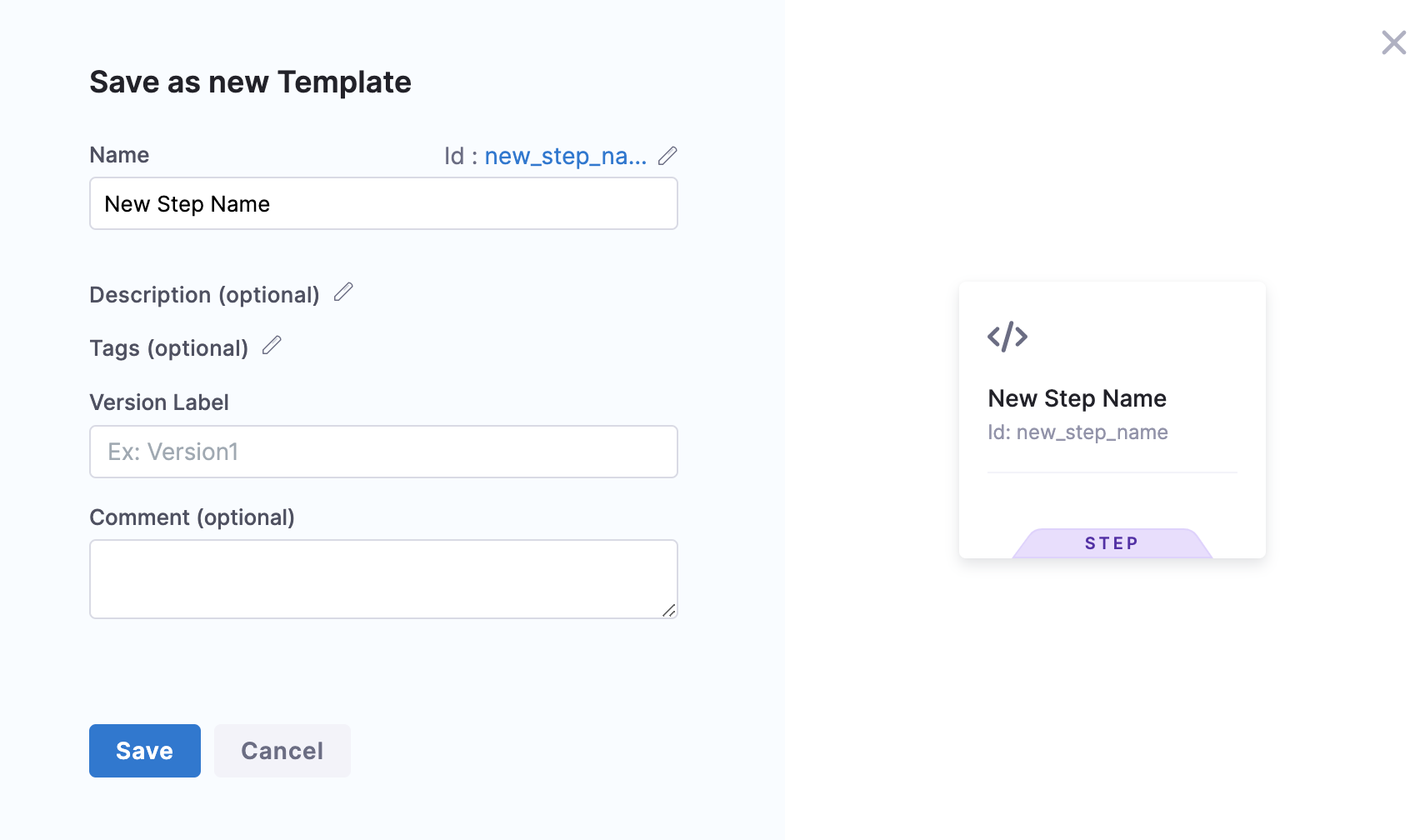 • Save as new version: Create a new version of the selected template and save with the changes you just made.