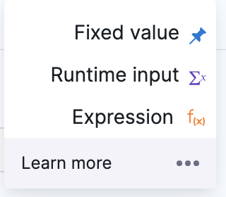 Go to Fixed values, runtime inputs, and expressions for more information.