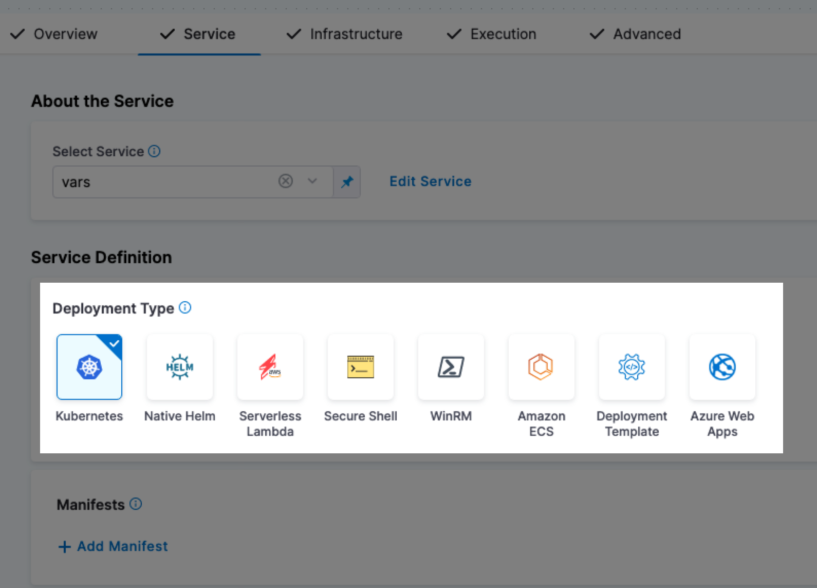 Harness has generic manifest expressions and manifest expressions for specific deployment types.