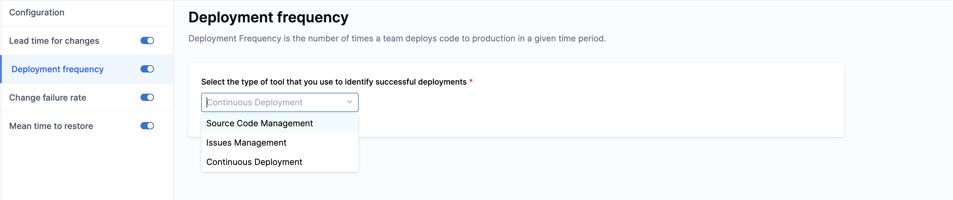 Choose where deployment signals will come from. You can measure deployments using one of the following systems: