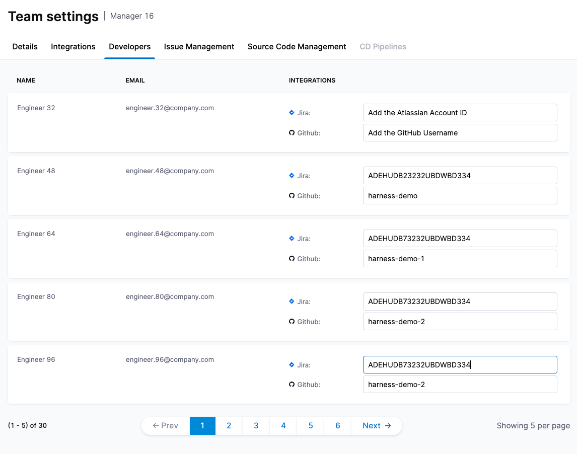 The team managers must manually update their developer records and the respective system specific user identifiers in the developer settings: