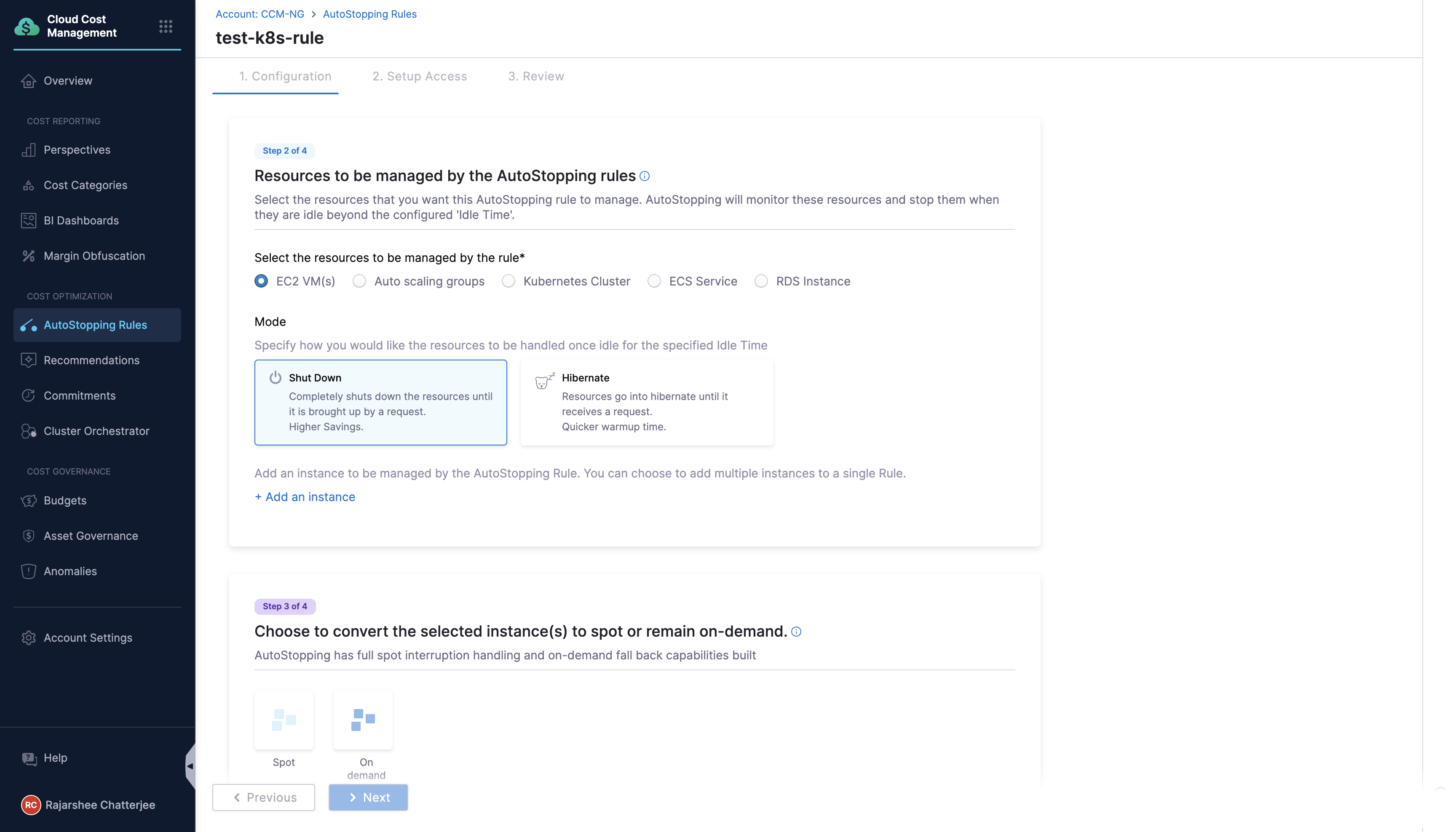 • Streamlined Autostopping Rule Creation: CCM has introduced a use case-based setup with intuitive Traffic-based and Schedule-based mode selection. The interface dynamically adjusts to display only relevant configuration fields, simplifying the setup process and improving user experience. [CCM-24600]