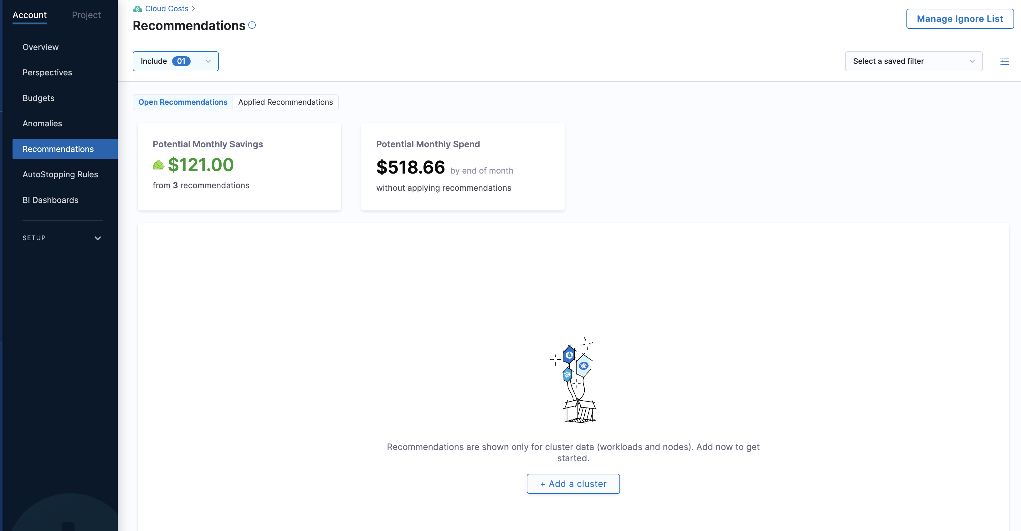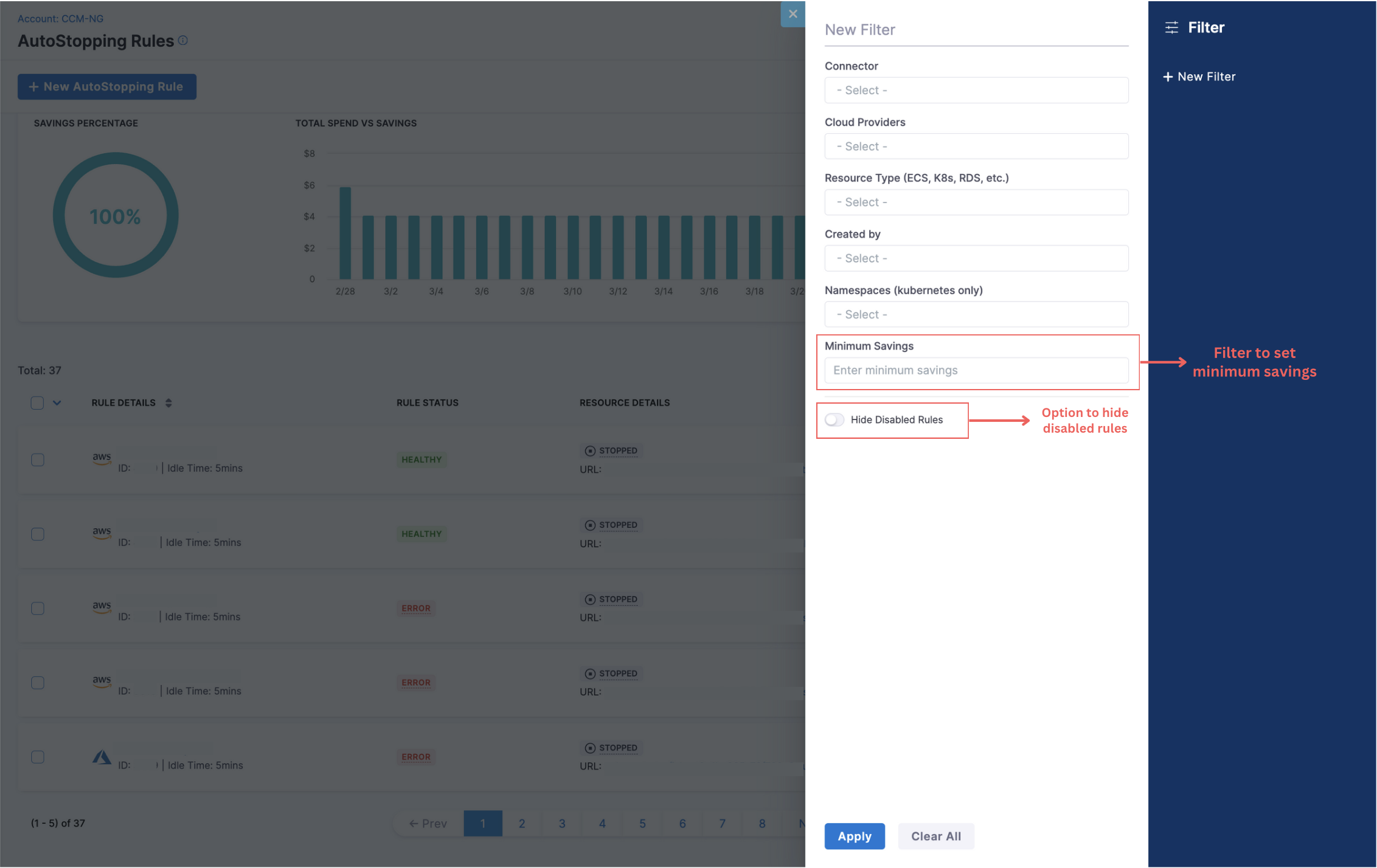 • New Filters in Cloud Integration: We have added new filters on Account Settings > Integration for Cloud Cost.