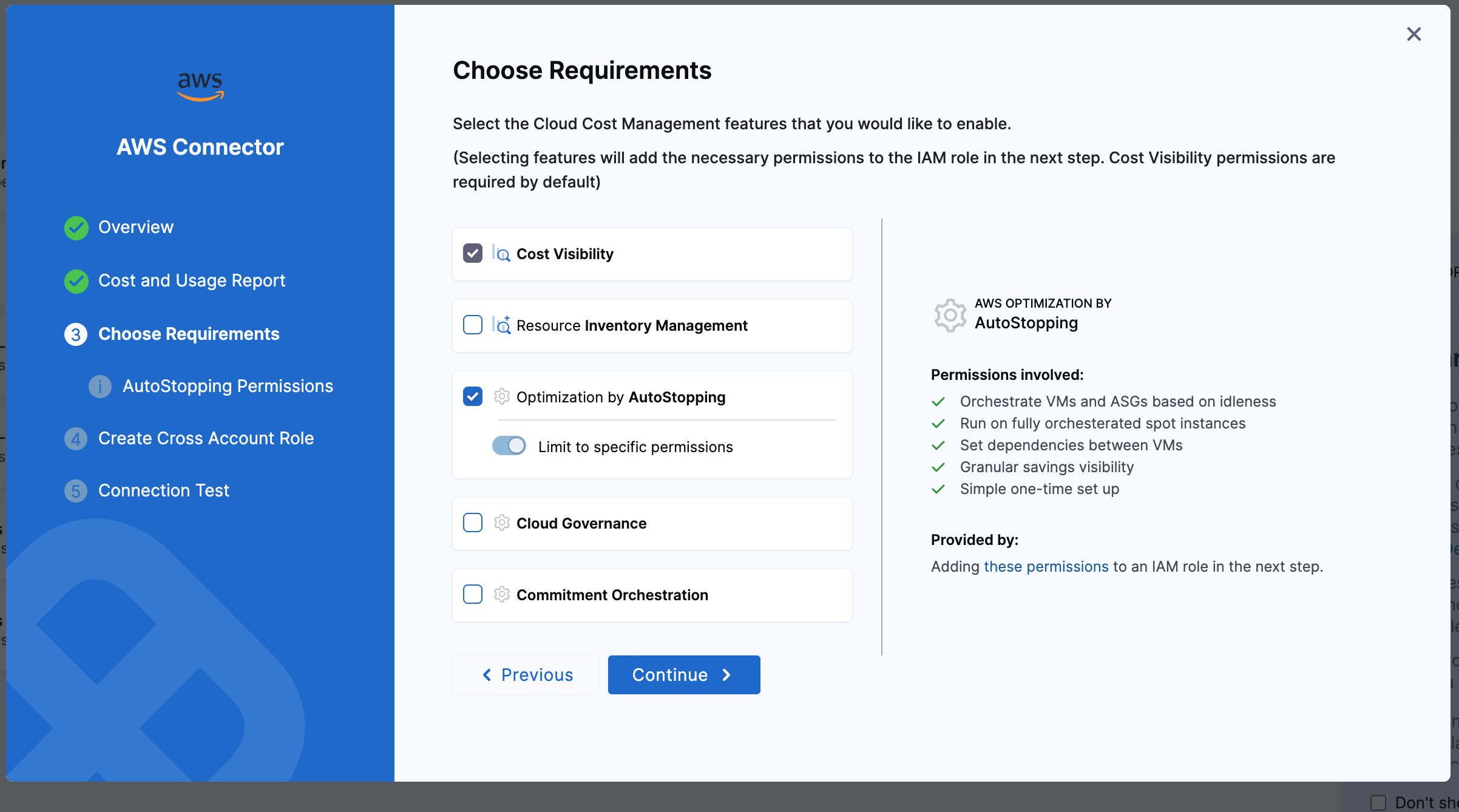 As part of Azure Connector validations for Inventory and AutoStopping, we're now checking whether the service principal has the required roles for these features: Reader role for Inventory and Contributor role for AutoStopping. These checks will run whenever Test Connector APIs are hit for CeAzure connectors.
