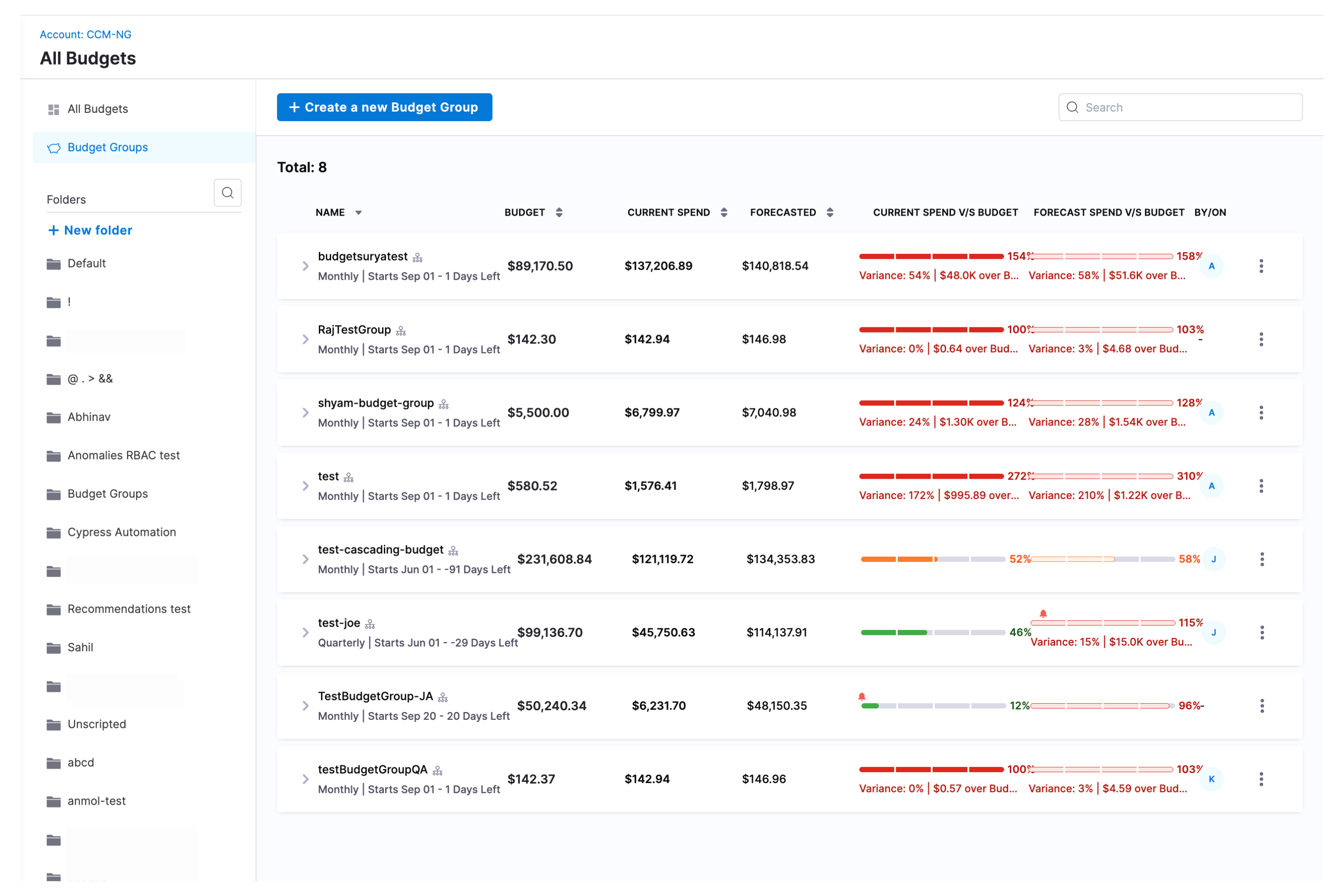 • Folder ID Now Mandatory for Budget Creation via API: To ensure better organization and visibility of budgets in the UI, the folderId field is now mandatory when creating budgets through the API. Previously, budgets created without a folder ID did not appear in the UI, leading to inconsistencies in reporting. With this update, any API request that omits the folderId will return an error. This change ensures that all budgets are created under the correct folders, improving overall organization, visibility, and reporting accuracy. Users integrating with the API should update their automation or scripts to include the folderId parameter to avoid errors during budget creation. [CCM-27057]