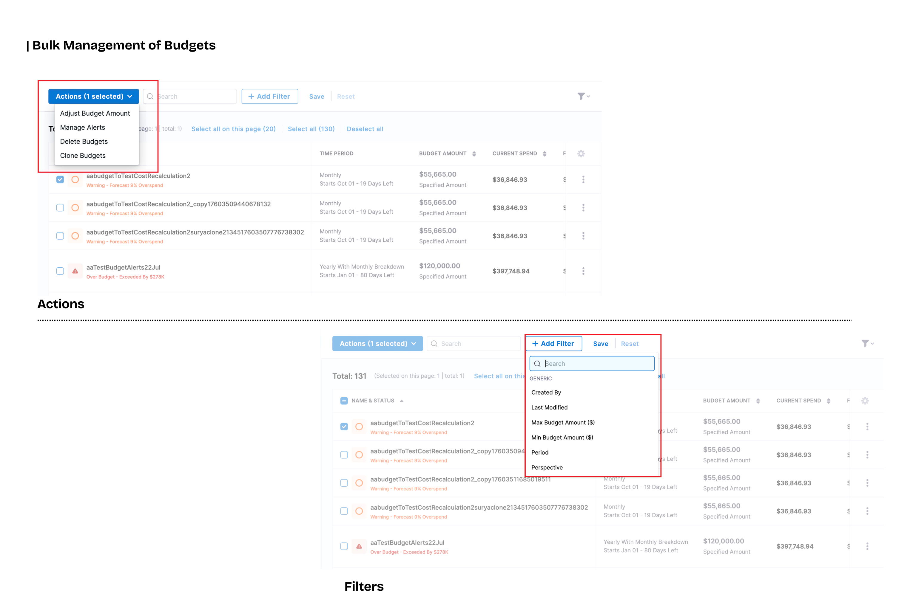 These changes improve the overall usability and discoverability of budgets, allowing users to identify and organize budgets more efficiently.