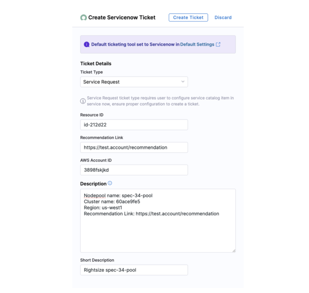 • Enhanced Ticket Management for ServiceNow: Added support for "Service Request" ticket type for our ServiceNow integration for recommendations. Using Service Request tickets, customers can manage recommendations more easily with automated workflows and auto-discovery. Ticket lifecycle can be managed using proper fulfillment and approvals.