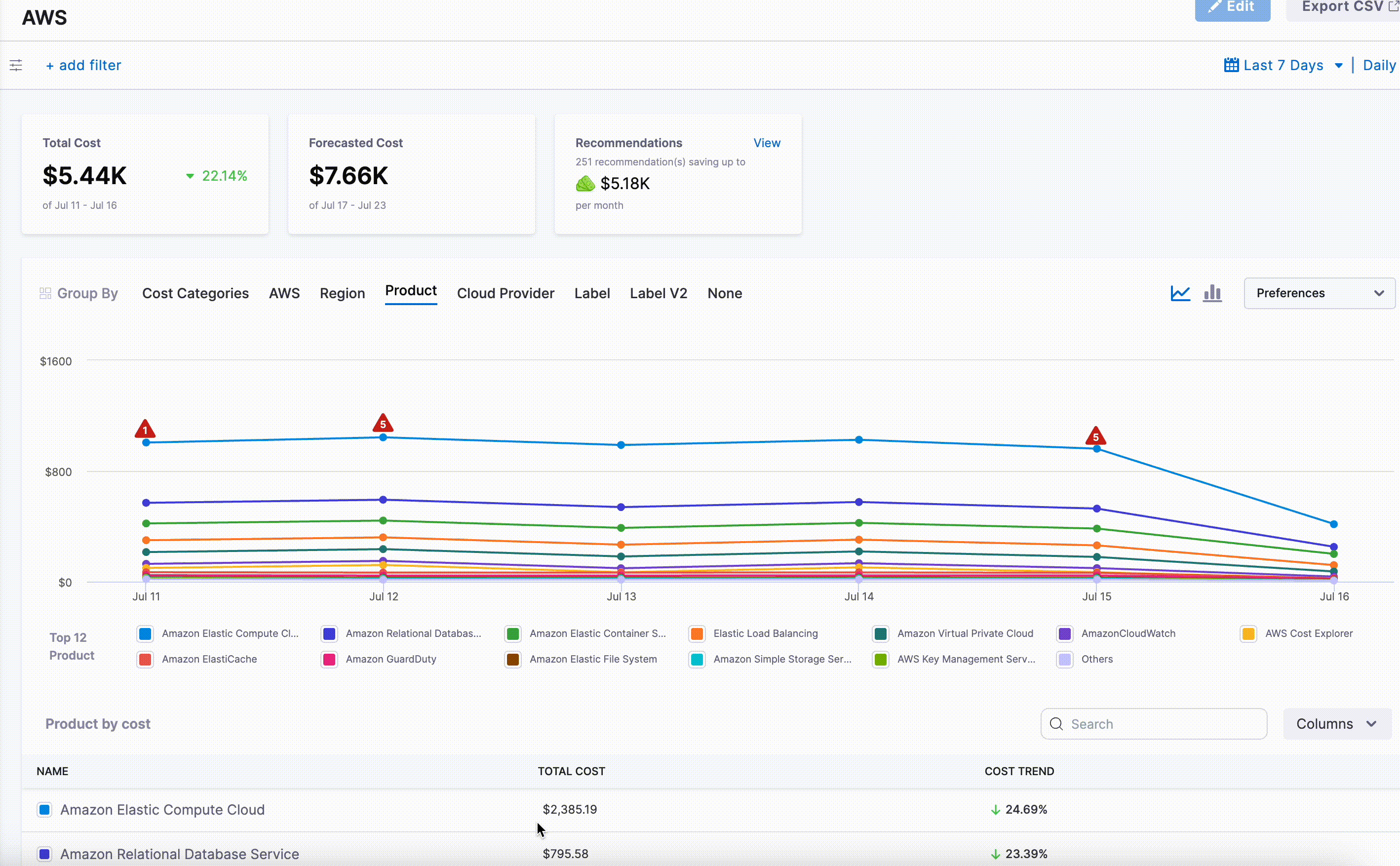 • Anomalies Table Sorting: The default view of the anomalies table now sorts by "Cost Impact" in descending order. [CCM-26665]