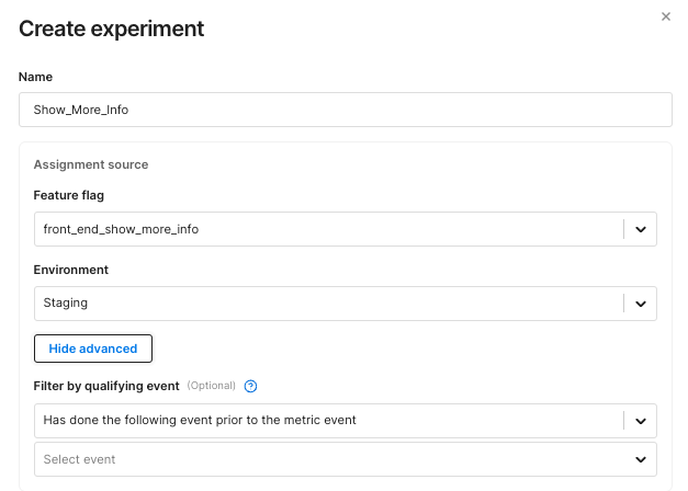You can now define an entry event filter when creating an experiment in Harness FME. This filter ensures only users who actually interact with the experiment entry point are included in the analysis. This reduces noise, increases accuracy, and helps make your metrics reusable across experiments without requiring manual filtering.